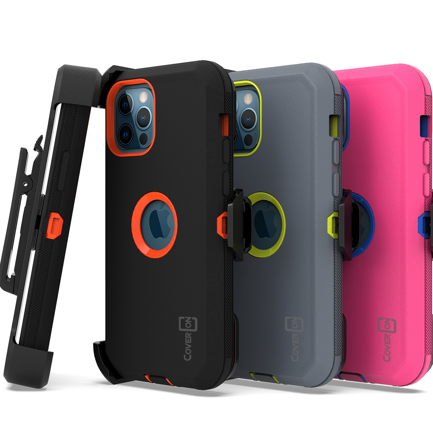 For Apple iPhone 12 Pro Max Shockproof Military Grade Clip Holster