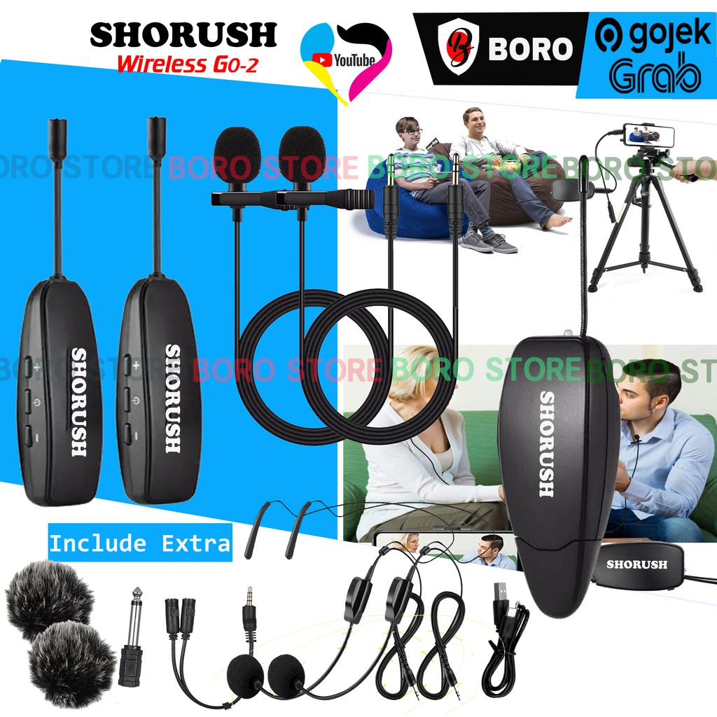 Shorush GO Dual Microphone Mic Clip On Wireless 2.4G PRANK Vlog untuk 2