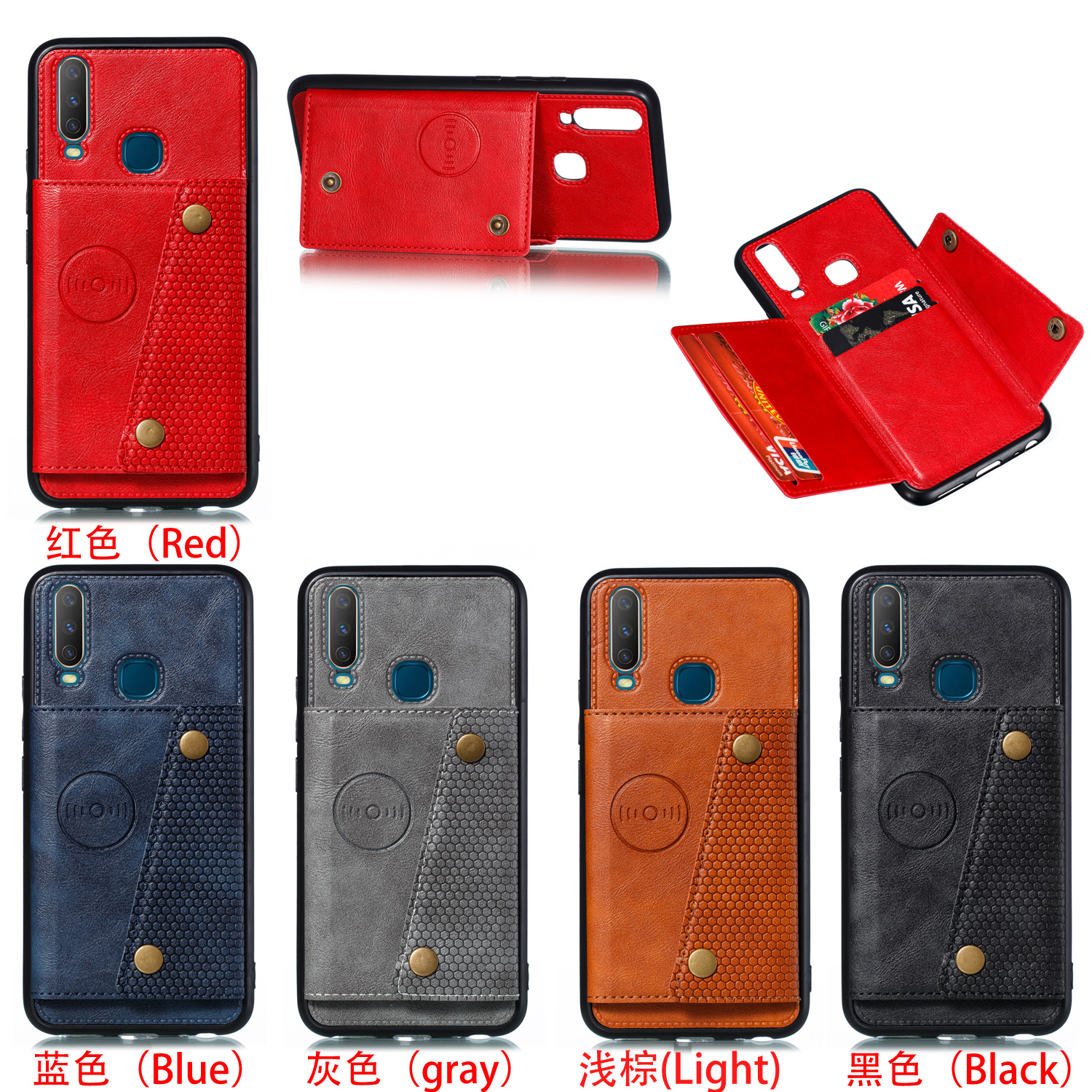 For VIVO Y17 Shockproof Double Buckle Wallet Case Cell Phone Case PU